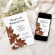 Invite guests to a Fall holiday feast with the natural Leaf Stamp Thanksgiving Dinner Invitation. This seasonal custom fall feast dinner party invite features a digitally enhanced nature photograph of brown Korean Maple leaves in the Autumn. Unique inspo or idea for your woodsy Autumnal gathering event. Available as a printed invitation for mailing or as a digital download for easy sharing digitally online.