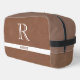 Brown Leather Texture Trim White Monogram Name Dopp Kit