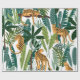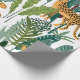 Brown leopard in tropical lush jungle leaves wrapping paper