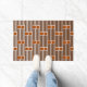 This doormat has a geometric design of five lines with two boxes on top repeated over the design.