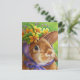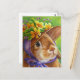 Brown Lop Eared Rabbit in Bonnet Watercolor Art Postcard