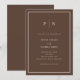 These elegant, modern wedding invitations feature a simple brown minimalist text design, with a classic warm, creamy white frame at the border. Add your initials or monogram to make them completely your own.