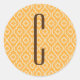 Brown Monogram on Retro Orange Pattern Classic Round Sticker