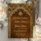 Amaze your guests with this real gold foil islamic wedding invite featuring an elegant arch and 'Bismillah' in Arabic calligraphy on a beautiful quatrefoil pattern background. Simply add your event details on this easy-to-use template to make it a one-of-a-kind invitation.