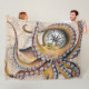 Brown Octopus Vintage Map Compass Fleece Blanket