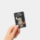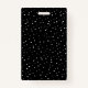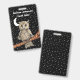 This name or identification badge has a brown owl with golden yellow eyes sitting on a tree branch wearing a blue necklace in a black night sky with white stars and a white crescent moon. Back is black with white stars. Customise your name and information with the templates.