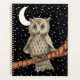 This planner is black covered with white stars and a brown owl sitting on a tree branch with pretty eyes wearing a blue necklace with a white crescent moon in the background.