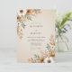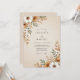 This design features an artistic arrangement of painterly blossoms in warm brown, cream, and subtle green hues. Evoking a rustic yet elegant mood, it's perfect for an autumnal or nature-inspired gathering. The composition creates a delicate border of leaves and blooms.
