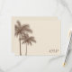 A stylish brown palm tree RSVP response wedding card. Easily customise with your information. Select the customise button to change the font style, colour and size.