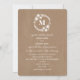 A monogram wedding invitation featuring an illustration of a white floral wreath at top. Personalise with your initial inside circle. Personalise the text with details of your occasion. Wording is from bride and groom together with their families. Background is brown paper inspired.