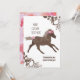 This pretty brown pony birthday invitation is perfect for girl who loves ponies, mini winnies, miniature horses or Shetland ponies. This equestrian birthday card is easily personalised and the text and graphic can be positioned to your liking. Brown galloping pony with darling pink roses on her head and tail is versatile for a little girl's birthday pony ride birthday party. Beautiful for pink and brown birthday party theme colours.