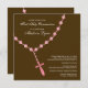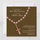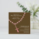Start your event off right with our trendy brown & pink Rosary Beads First Holy Communion invitation. Invitation features a beautiful pink cross rosary beads set on a brown background. Easy to customise, just add your event information and you're all set to go.