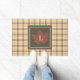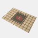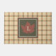 Brown Plaid Pattern Fall Maple Leaf Monogram Doormat