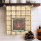 Brown Plaid Pattern Fall Maple Leaf Monogram Tea Towel