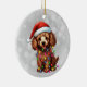 Brown Poodle Wrapped in Christmas Lights Ceramic Tree Decoration