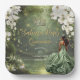 Personalize this enchanting Princess and the Frog Quinceanera / Sweet 16 birthday paper plates easily and quickly. Simply click the Edit Using Design Tools button to further edit the text, change font styles and font colors. Featuring a brown girl dressed in a sage green dress, a frog prince, beautiful trailing white floral and an enchanted forest and pond background. The princess, crown, little butterflies and frog are movable, resizable, multipliable and removable. Customize it to suit your occasion. For a seamless and coordinated look, explore our range of matching items available in-store. (c) Somerset Fine Paperie.