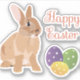 A cute brown rabbit with Easter eggs. The text part says "Happy Easter".