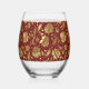 Brown Red and Gold Floral Damask Monogram Stemless Wine Glass