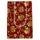 Brown-red & Shiny Gold Damask Pattern Medium Gift Bag
