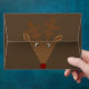 A cute, fun holiday envelope in brown with a cute reindeer design on the back, a lighter brown banner area on front for the recipient's name and address, and inside the flap is a sting of coloured tree lights and text that reads "Merry Everything" that is customisable!