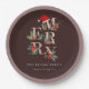 Brown Rose Gold Red Green Merry Christmas Foliage Paper Plate