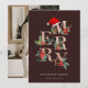 Brown Rose Gold Red Merry Christmas Foliage Photo Holiday Card