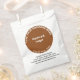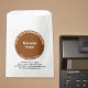 Business brand in brown round shape on customisable paper bag. Customise it by uploading your business logo, typing your business name, city or town, state, address, phone number, e-mail and website, a marketing strategy to advertise your business or to promote your brand. Customisable packaging material that you can use to build brand name awareness. You can also use it as a wrapper for gifts or favours for your customers or clients. Please check the appearance after uploading logo and typing texts. If the appearance is pleasing to you, you can place your order now. If you need to resize and reposition the logo and texts, please adjust in the design tool. You can also change the font style, font colour and the colour of the round shape in the design tool.
