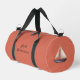 Brown Sailing Boat and Name on Red Duffle Bag