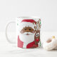 Santa and Reindeer series Original drawing done in acrylic on ceramic mugs and plates, electronic art then created in illustrator. Original Art by artist Barbara Higgins Smith in 2018. Barbara is an American artist. Follow Barbara @transcendedcreations and www.teleworkdesign.com