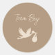 Brown Stork Baby Delivery Gender Reveal Team Boy Classic Round Sticker