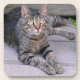This item displays a photograph of a brown tabby cat resting outdoors.