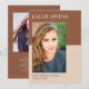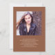Personalised brown and tan (editable colour) graduation announcement photo flat card. Personalised with 2 photos, graduate's name, school name, and graduation year. On the back is another photo along with a note to friends and family. This note can talk about your graduate's accomplishments in high school and/or their plans for the future. It can include information about the graduation ceremony or an invitation to your graduation party.