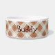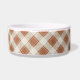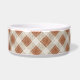 Stylish dog dish done in white ceramic and graphics of a brown and tan plaid pattern, around the bowl. Dark brown custom text, in the middle, is ready to personalise for your pooch. Great gift idea for anyone with a pet, comes in two sizes.