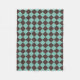 Brown Teal Chequered Diamond Pattern Fleece Blanket