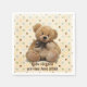 Brown teddy bears on soft yellow background with polka dot pattern.