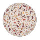 Terrazzo's abstract brown hues cover vintage floors. Trendy stone texture for your space.