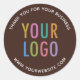 Personalise our round thank you stickers with your company logo and custom text. You can customise the words "Thank You for Your Business" to your own message in your preferred language. These are professional scratch resistant stickers printed on acid-free paper. Available in a glossy or matte finish as 3 inch or 1.5 inch stickers. Designed in chocolate brown and other colours (all colours are customisable). Low minimum order quantity and no setup fee.