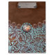 Rustic western country brown turquoise tooled leather print clipboard