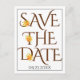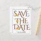 Elegant brown typography and orange rose fall wedding Save the Date postcard. It showcases the phrase "Save the Date" in a decorative font in brown and a bouquet of orange roses, the date of your wedding and a black border on the front. The back includes details of your wedding.