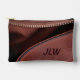 Brown Unzipped Leather with Initials Stylish Accessory Pouch