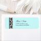 A custom return address label with script and standard letters on a teal background and a mediaeval element in chocolate brown. Click Customise It to change fonts or colours, even save your design for later.