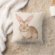 Brown Watercolor Bunny With Big Ears On Beige Cushion