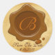 The sticker is made on wonderful paper and had no problem sticking to the bag that I purchased to put it on. I wanted to find a design that would be cute for the bride and groom and this one fit the bill as it has cute "bees" buzzing around and the wedding was taking place in a town called "Bee Cave". The packaging was great and protected the stickers. The website is easy to navigate and there are so many color choices. I had no problem finding a color that the bride was using on everything else selected. The design was adorable and there were many to choose from. You can make the figure as larger or smaller and you can place the photo and writting whereever you want to in the sticker. The printing is fabulous..better than expected.