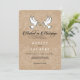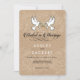 Personalised Wedding Invitation: Brown-tone lacy net card featuring two doves, two wedding bands and "United in Marriage" calligraphy. Black text, highlighted with white text. Matching backside. Designed for traditional, non-traditional and unisex marriage. Fits best on vertical 5x7 card.