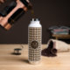 A classic houndstooth design in shades of brown and tan creates a fun and updated pattern with a final accent of a metallic-like rose gold mixed in to create a design that will really pop. Customise the monogram with your initial to create a water bottle that is uniquely yours.