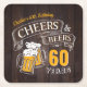 Stylish cheers and beers to 60 years typography design on brown wood grain background, custom it with your own text, fun and unique, great for any age adult birthday party for men, or anniversary party for any occasion.