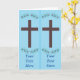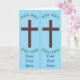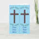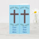 A painting of a brown wood cross is enclosed by an array of purple flowers with green leaves. The background is a light sky blue. The design is printed twice, side by side, making your greeting card serve as bookmarks too. There is a template placeholder for you to type in your own message on each bookmark. The Christian themed design is by CherylsArt.