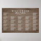 Brown wood grain wedding seating chart poster. Rustic wood look with many sections of white, printed text. Seat guests at the reception by listing their names alphabetically or by table number. Upgrade for a thicker paper type.