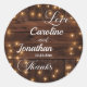 Brown Wood Rustic String Lights Wedding Classic Round Sticker
