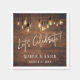 Brown Wood Wall with Edison Lights Let's Celebrate Napkin